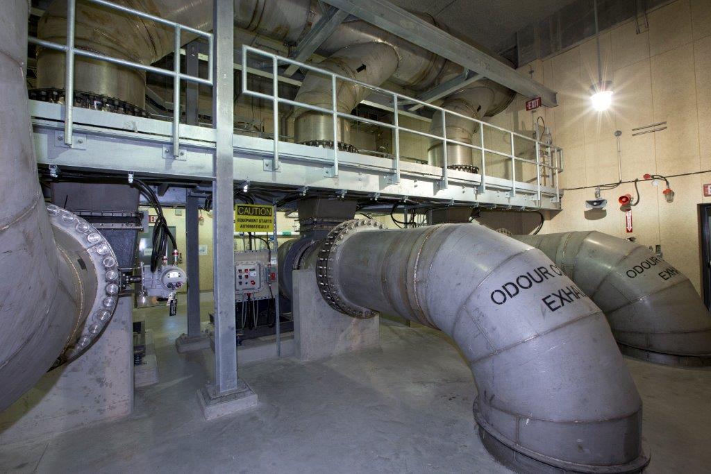 For this project, Kenaidan constructed an influent pumping station and headworks facility, including a preliminary treatment building, biofilter building, aerated grit tanks, flow metering building, and electrical building.