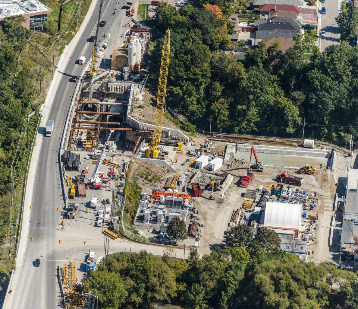 The project involved the construction of a launch shaft into the profile of a hill beneath Eglinton Avenue in Toronto. This project represents the first phase of an $8.5-billion transit expansion program to install a Light Rail Transit system from Black Creek Drive to Scarborough Town Center.