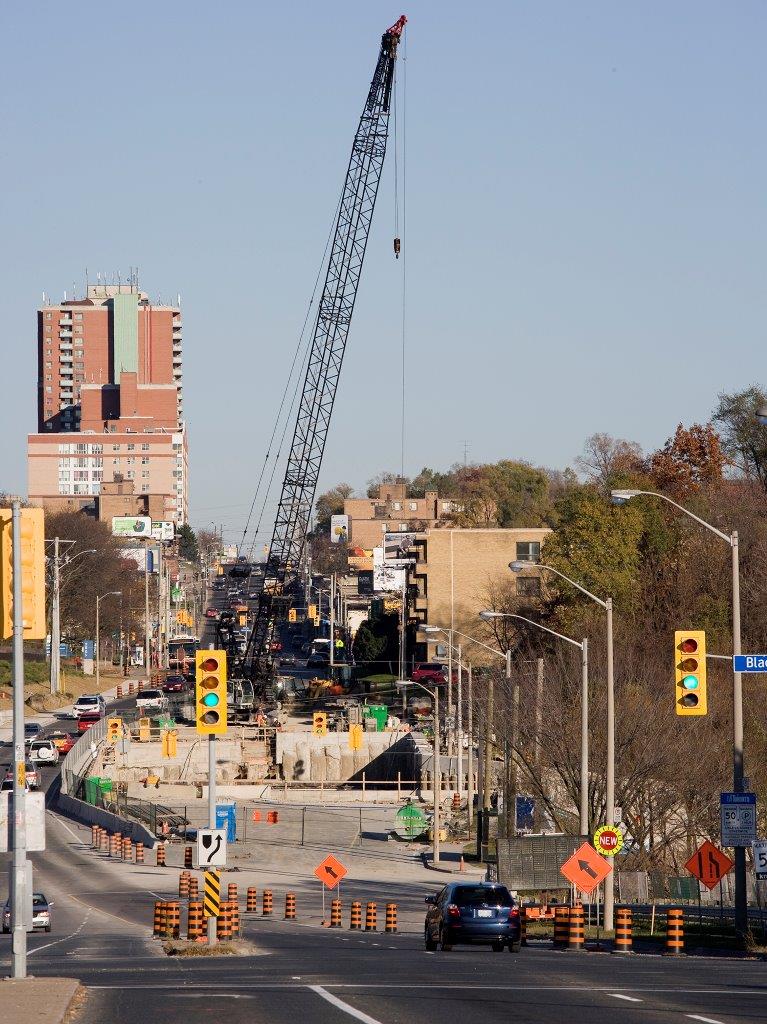 Through a series of traffic stages, the project included the widening of the bridge over Black Creek Drive and the construction of a caisson wall to permit the excavation of a 60-metre-long x 20-metre-wide x 17-metre-deep access shaft for Tunnel Boring Machines.