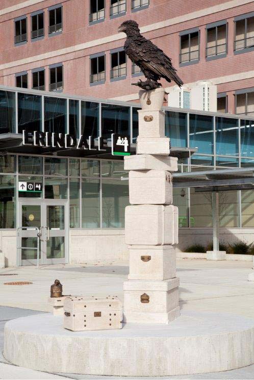 The garage is a 6-level post-tensioned cast-in-place concrete structure landmarked by a central stair tower. An enclosed pedestrian bridge, platform stair and elevator provide connectivity between the garage and the platform.