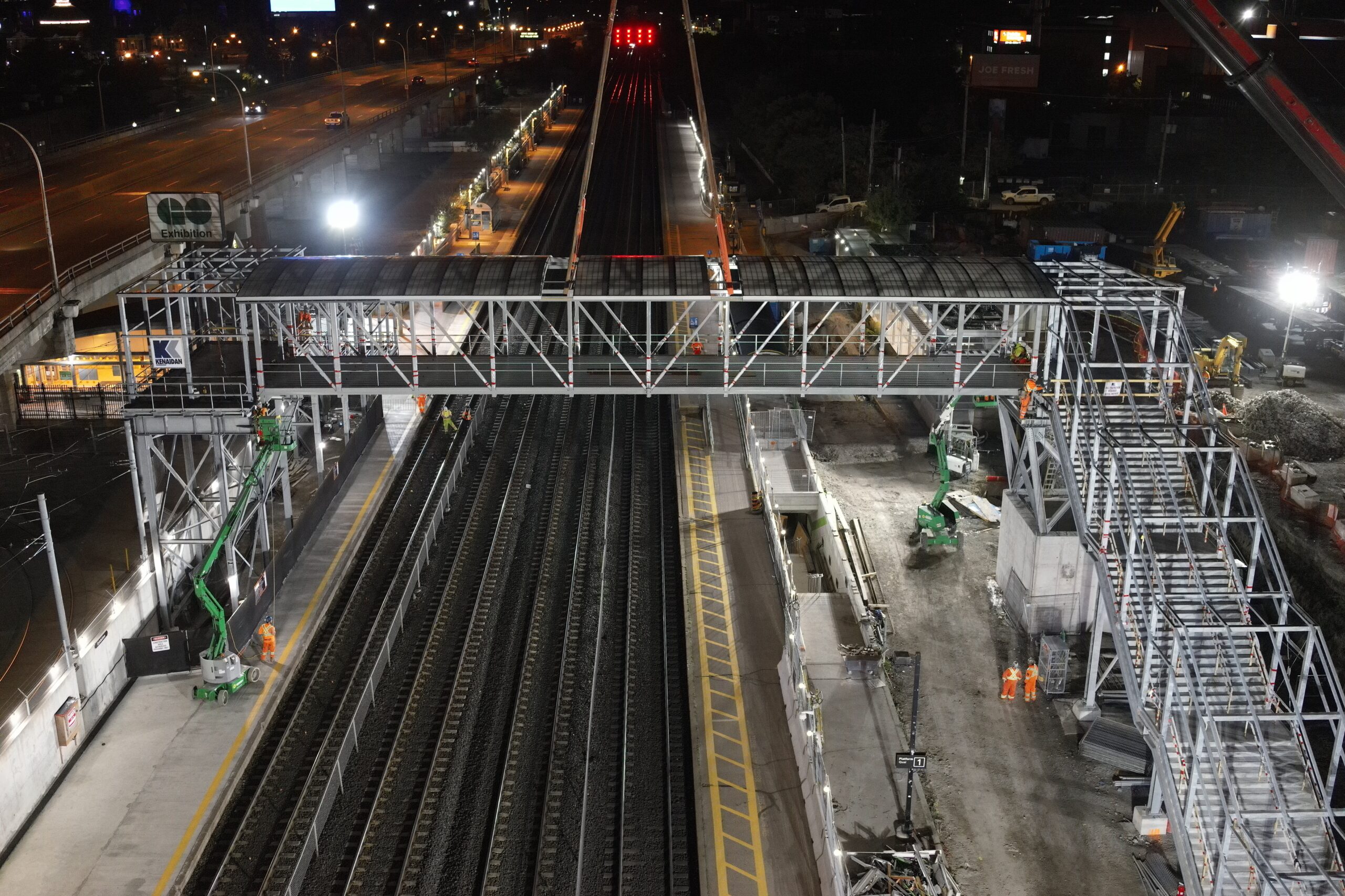 Additionally, we will remove the north platform, demolish the original building, construct a temporary pedestrian bridge over the tracks, and relocate various utilities.