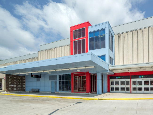 Exterior work included a glazing system to enclose the elevators with other treatments to the building façade. The pedestrian platforms and pavement were upgraded, and new lighting and signage were installed to improve wayfinding.