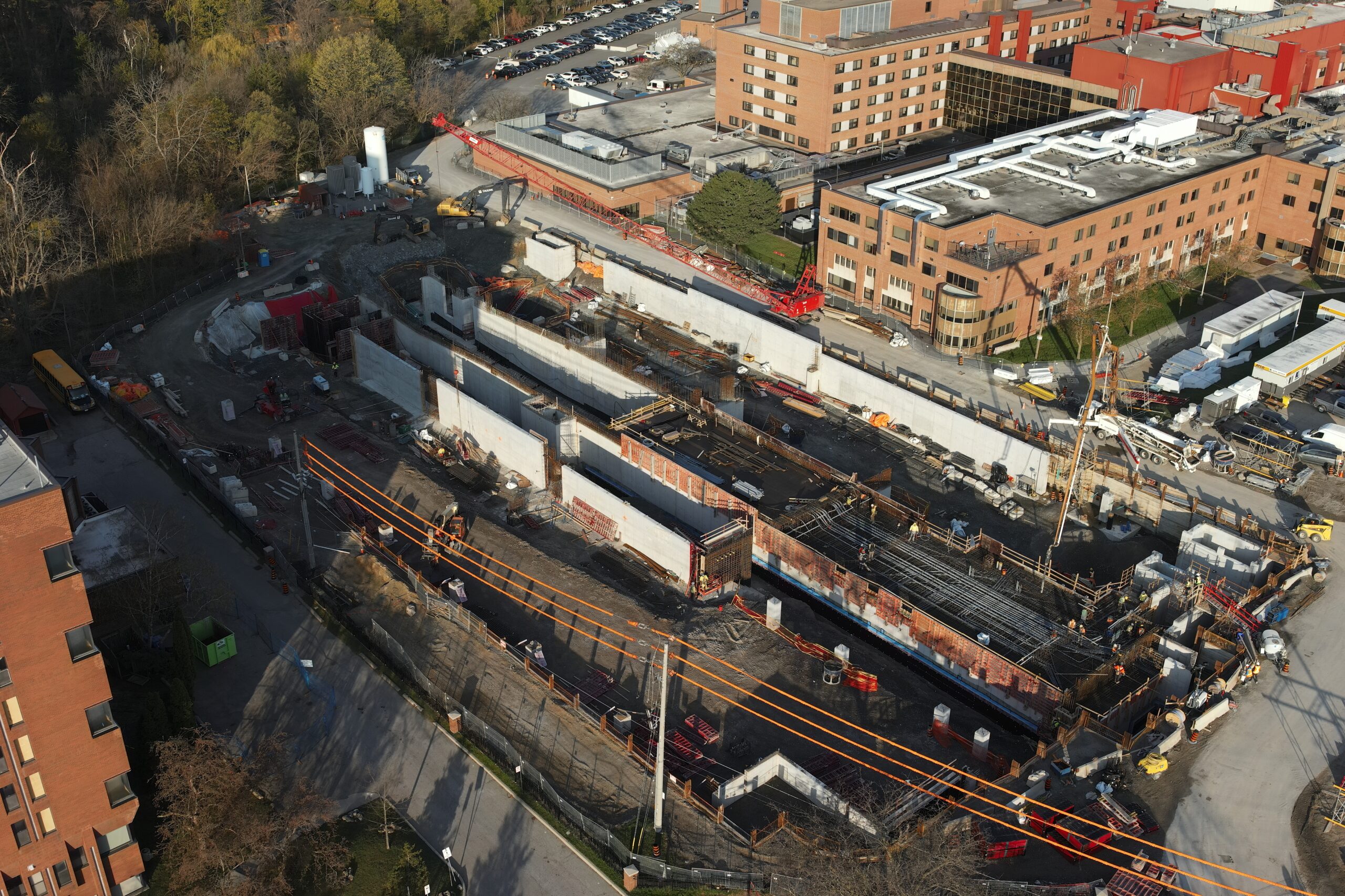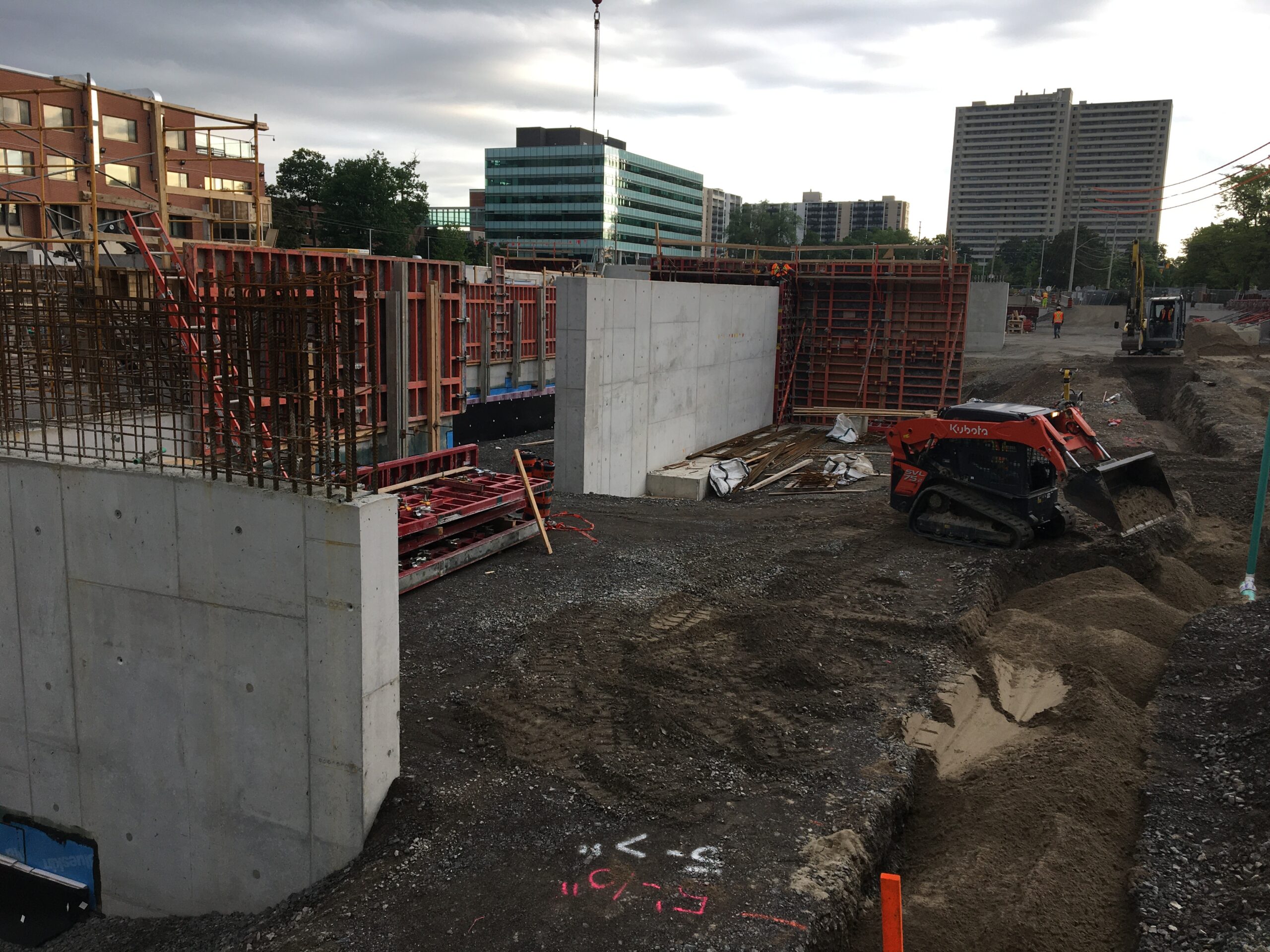 We will rework roads and curbs, relocate fibre optic lines, and install underground services. Electrical and mechanical work involves four elevators, multifaceted installations on parking level 1 and two hub electrical and communication rooms.
