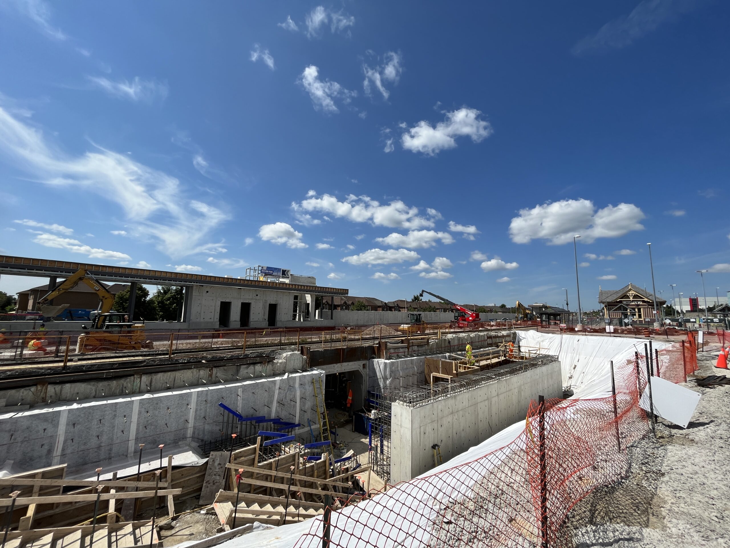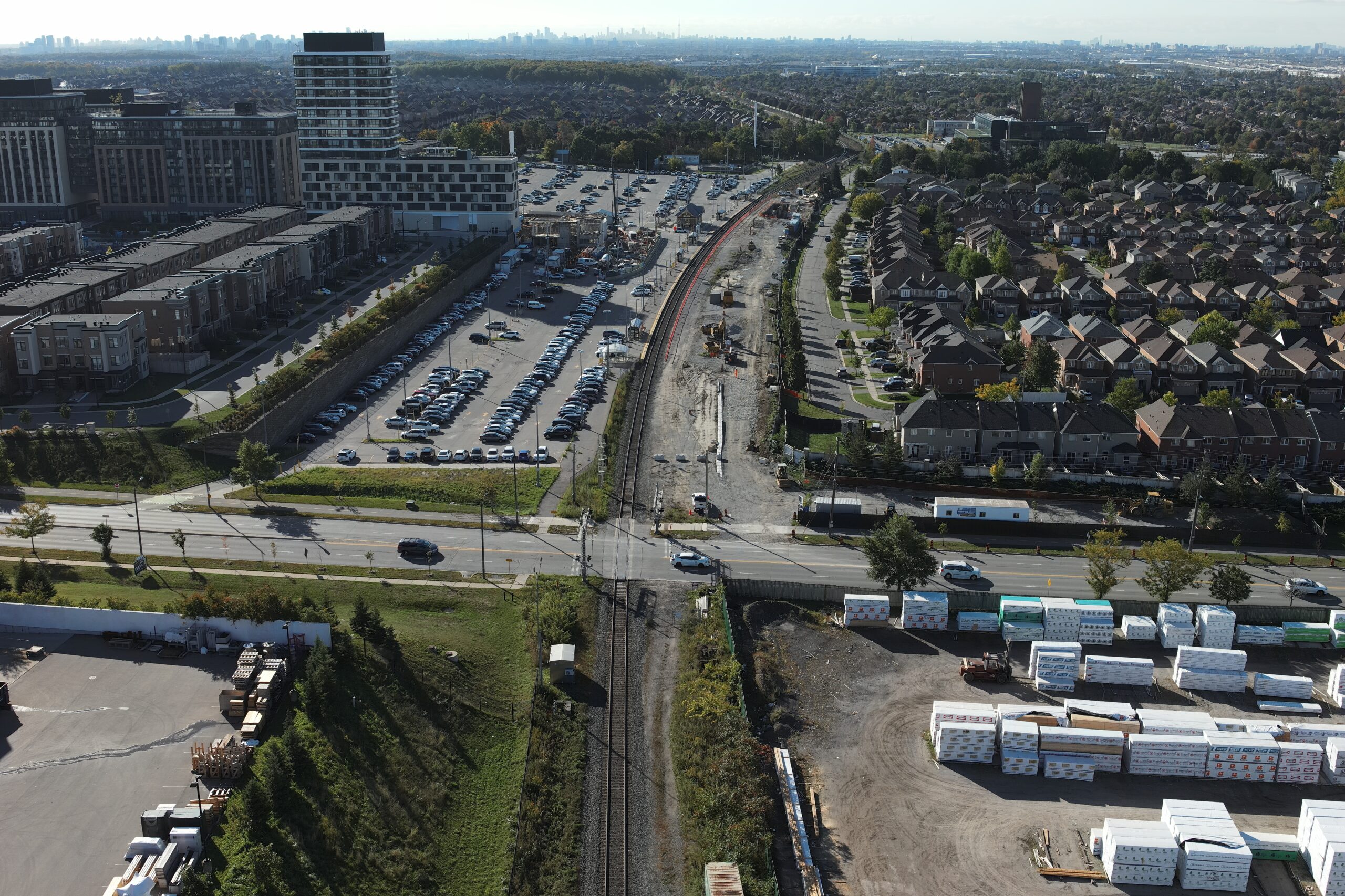 An overhead pedestrian bridge across Major Mackenzie Drive will improve connectivity, and tunnels Kenaidan installed under a separate contract will connect passengers to the new track and platform.
