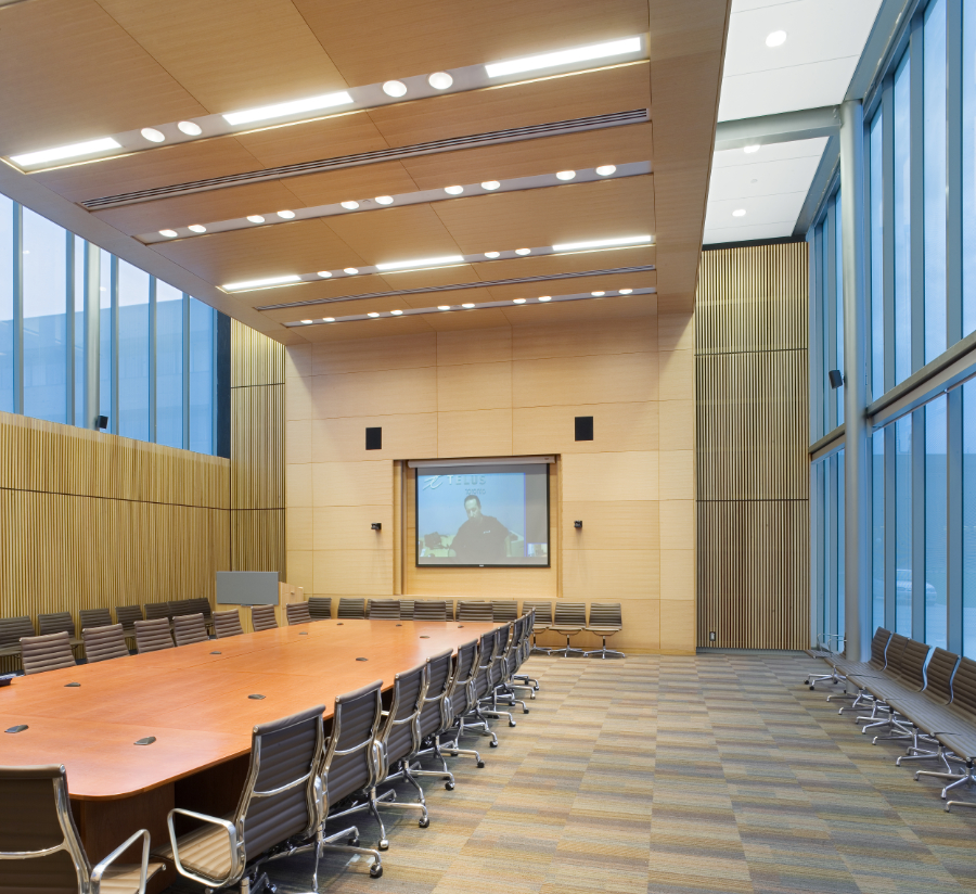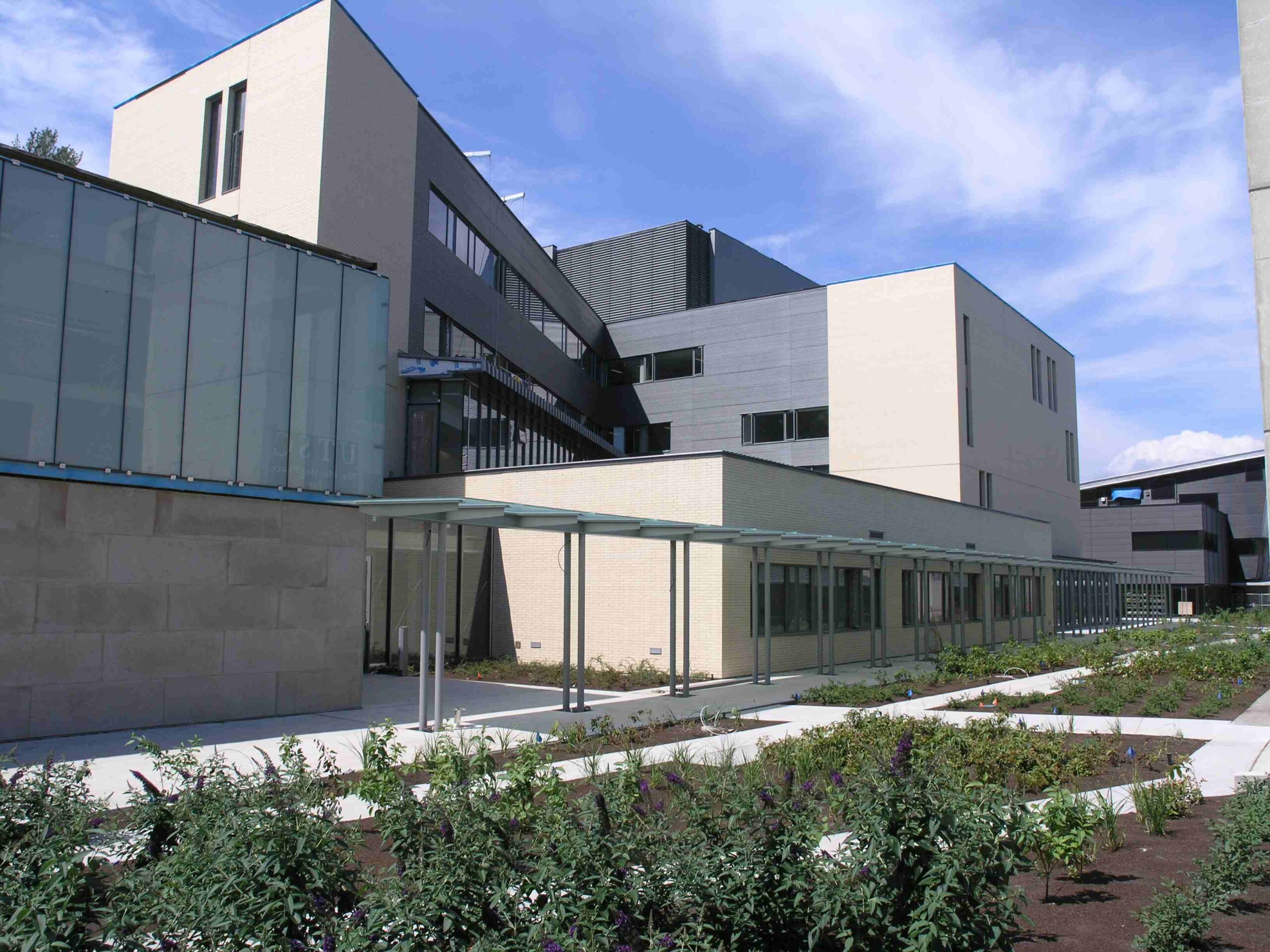 Kenaidan self-performed the cast-in-place concrete, exposed concrete columns, and polished concrete floors throughout the building. The exterior is brick with an aluminum curtain wall, an aluminum-clad penthouse, and a stone veneer. The building incorporates LEED credit features, including a green roof garden and a high-performance, low-argon-filled glazed window system.